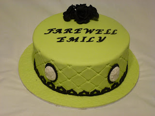 To farewell a colleague I put a slight twist on a previous design, using electric green on this retro pattern and featuring black sugar roses.